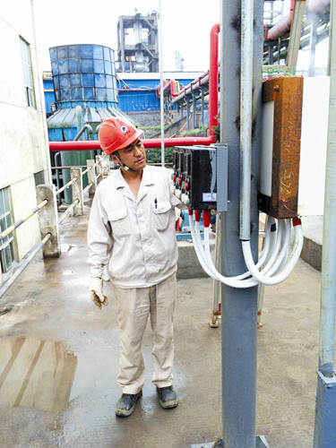总部硫酸厂共有四条生产线,不仅生产硫酸,还需向相关单位提供蒸汽,并利用蒸汽余热发电。2013年9月中旬,由于硫磺熔硫后杂质多,液硫通过过滤机过滤时易堵塞,导致原料无法满足生产需要,如果不及时抢修,将直接影响生产。王怀洲迅速组织维修人员赶到施工现场组织除渣。时值“秋老虎”肆虐之时,加之作业区存在蒸汽管道,现场温度极高,人人身上汗如雨下。除渣不仅是个力气活,也是个技术活,必须趁液流未凝固前拿着铁钎将渣挖下来,一旦凝固就得一钎一钎凿下来,劳动强度相当大。为防止高温度的液流溅出来烫伤,他们还佩戴上防护面罩,开始抢修。因温度高,防护面罩很快就被热气和汗水笼罩了,顺着面罩壁直往下滴水,脸上的汗水顺着额头流到眼睛里,又辣又痒。在王怀洲的带领下,他们毫无怨言,没有一个人退缩,衣服湿了干、干了湿,等抢修完成,一个个都成了“红眼睛”。
