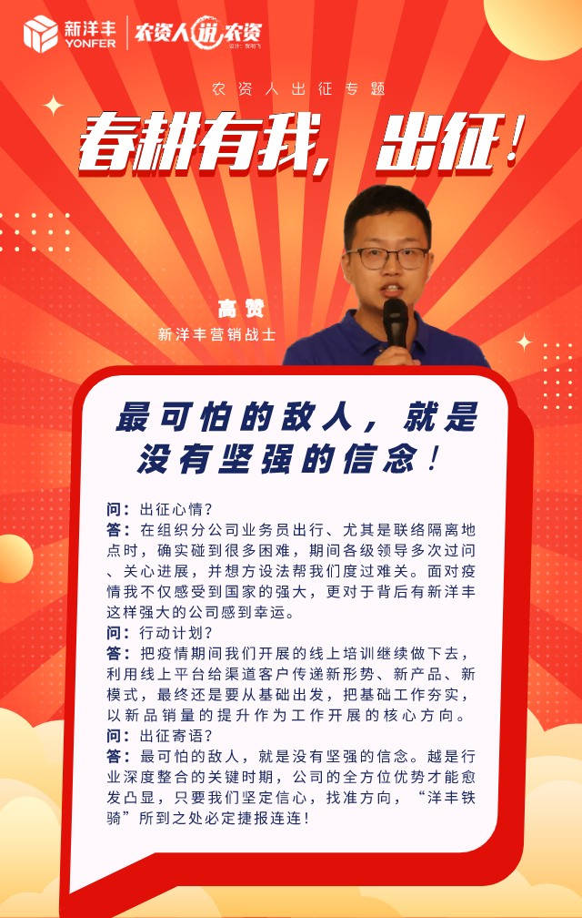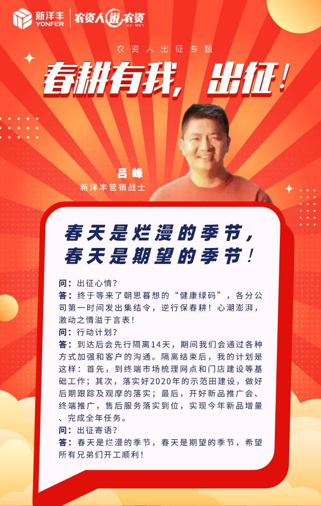 “春耕有我”的背后, 品牌管理部采访了身边的若干销售人员,有些人到达市场后即在酒店开启为期14天的安全隔离,有些人却只能停靠在服务区夜宿车中“熬过”14天。夜里零下2℃、顿顿桶装泡面,这是接下来他们将面临的“隔离生活”。当被问及是否想过退缩的时候,电话里的“他”沉默了几秒,“出来了就没打算回去”。这是“他”的坚持,也是“他们”的坚持。
